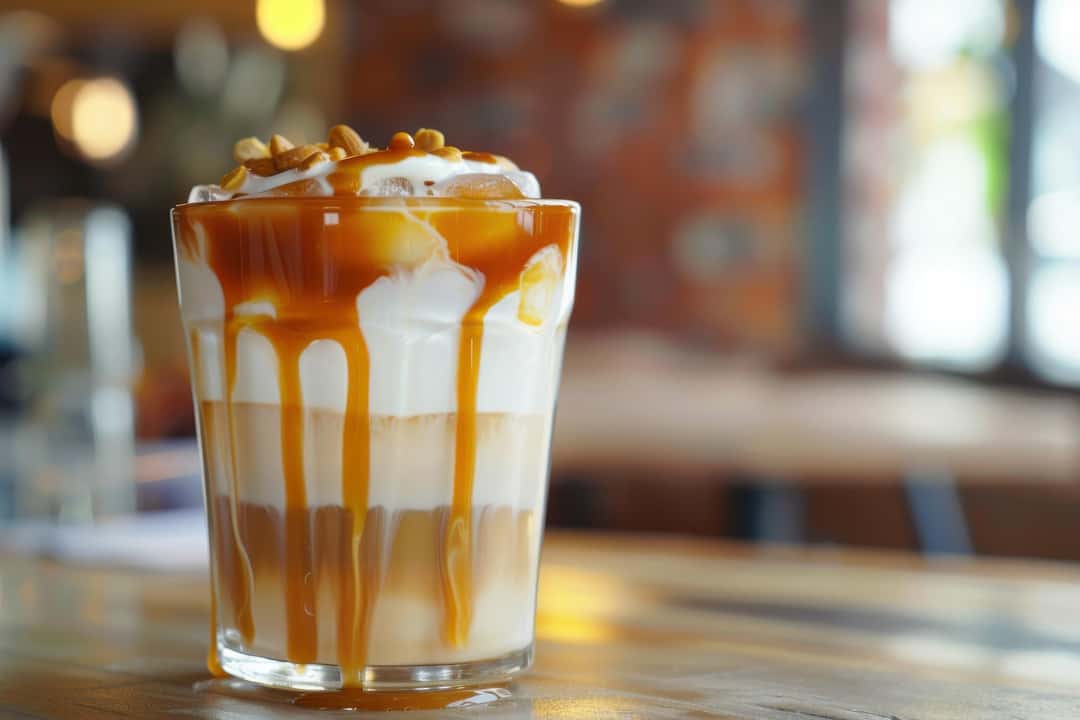 Sonbaharın serin havasına rağmen, gün ortasında ferahlatıcı bir buzlu kahve hala harika bir seçimdir. Karamel dokunuşuyla tatlı bir lezzete dönüşür.